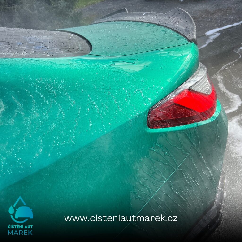 Exteriér prošel ručním mytím, a to včetně kol a pneumatik, na které byla nanesena impregnace. Na závěr jsme aplikovali tekutý vosk pro snadnější následnou údržbu a lepší ochranu laku.