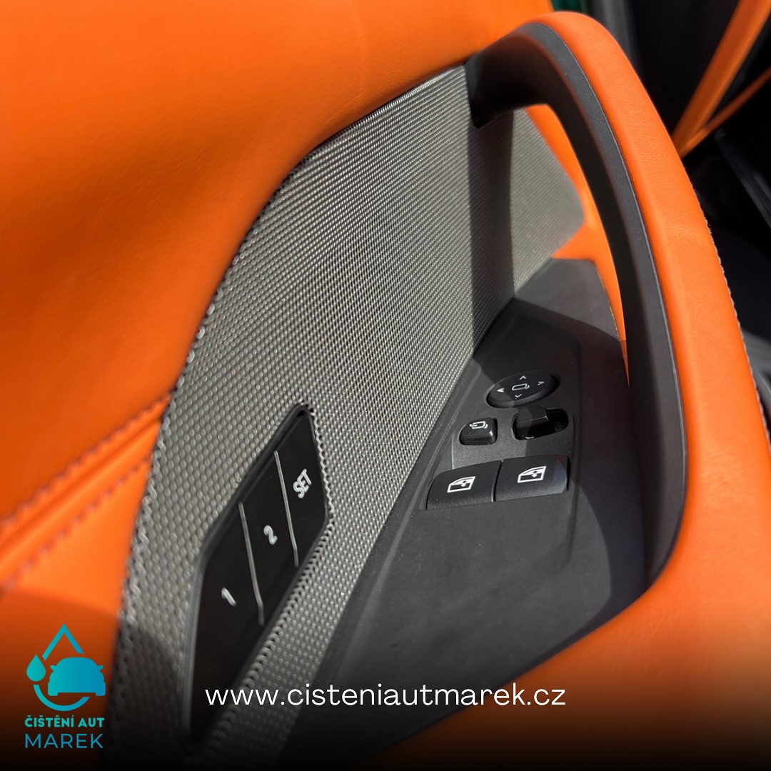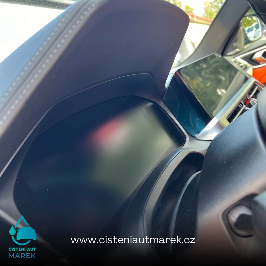 V interiéru jsme nejprve vozidlo důkladně vysáli, vyčistili stropnici a zaměřili se na veškeré části palubní desky, dveří a sedaček. Kůži na sedačkách jsme po vyčištění také odborně ošetřili.